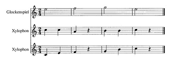 Die anderen Stimmen für Xylofon und Glockenspiel werden schließlich hinzugefügt. Will man mehrere Kinder beschäftigen, kann man jederzeit Boomwhackers hinzufügen.